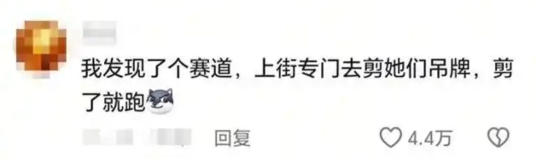 有网友评论:“我发现了个赛道,上街专门去剪吊牌,剪了就跑。”